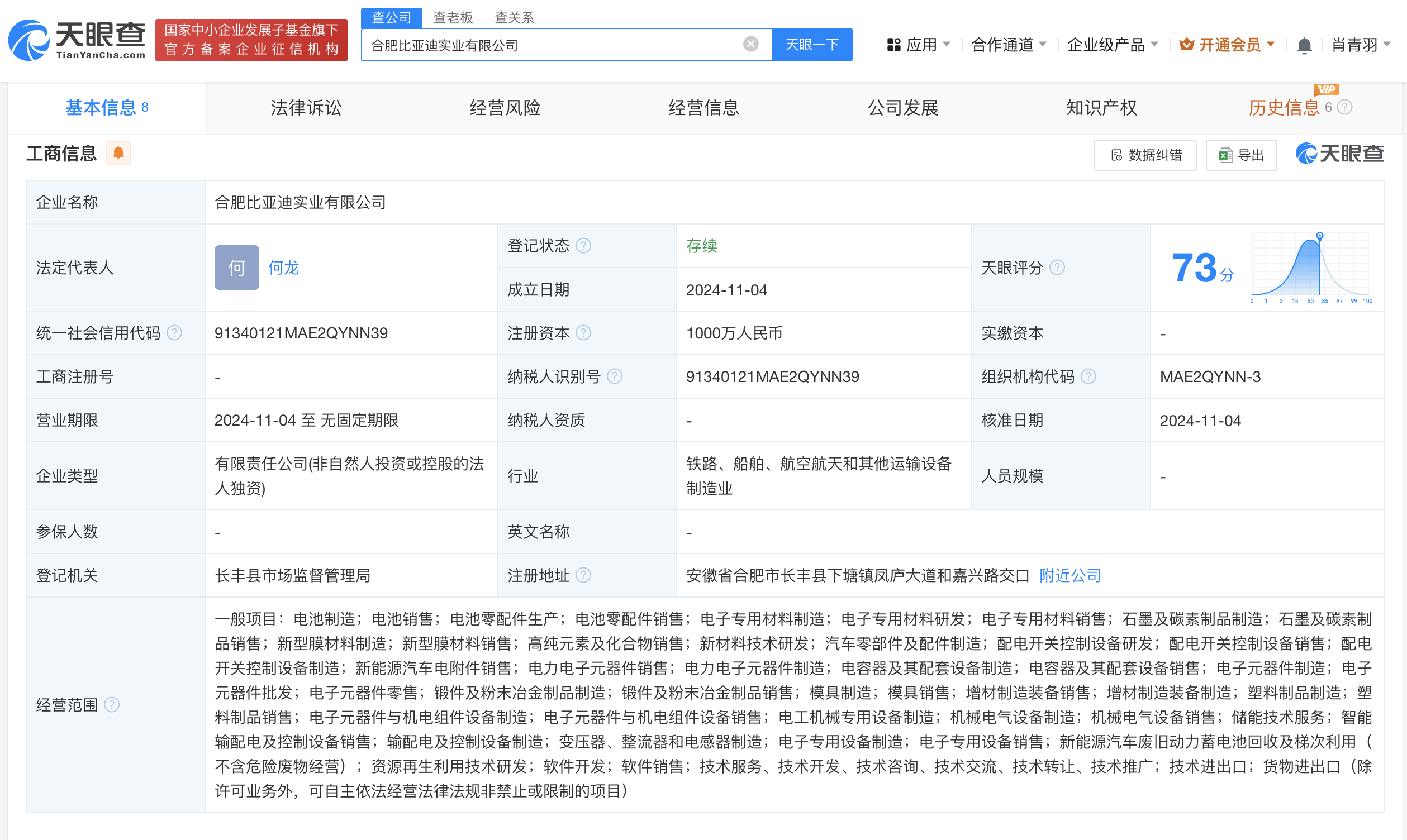 天眼查App显示,近日,合肥比亚迪实业有限公司成立,法定代表人为何龙,注册资本1000万人民币,经营范围含新材料技术研发、汽车零部件及配件制造、新能源汽车电附件销售、电力电子元器件销售、电力电子元器件制造等。股权全景穿透图显示,该公司由弗迪电池有限公司全资持股,后者为比亚迪(002594)全资子公司。