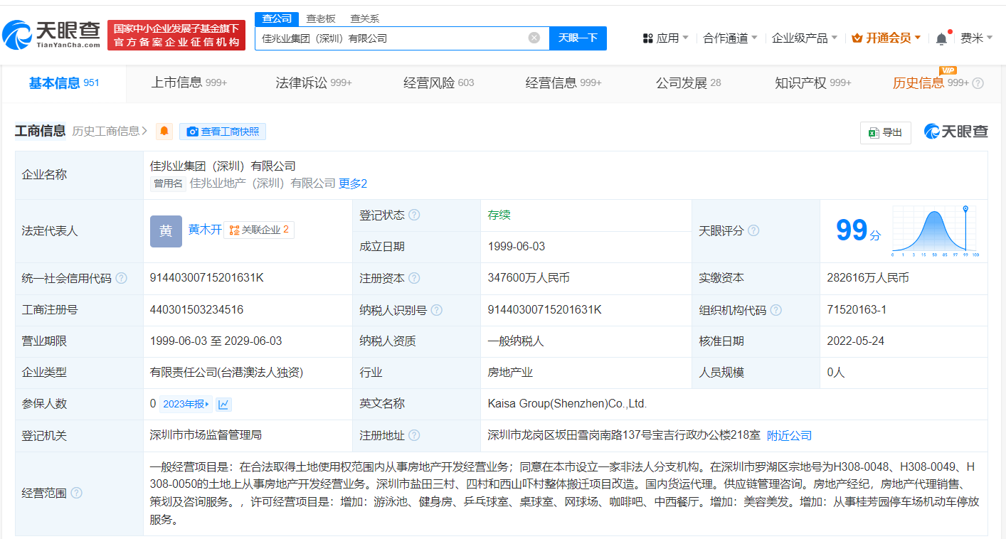 天眼查法律诉讼信息显示,11月5日,佳兆业集团(深圳)有限公司新增2条被执行人信息,执行标的合计6.4亿余元,涉及金融借款合同纠纷等案件,案件被执行人还包括南京佳期房地产开发有限公司、长沙市佳旺房地产开发有限公司等,执行法院为南京市溧水区人民法院、长沙市岳麓区人民法院。