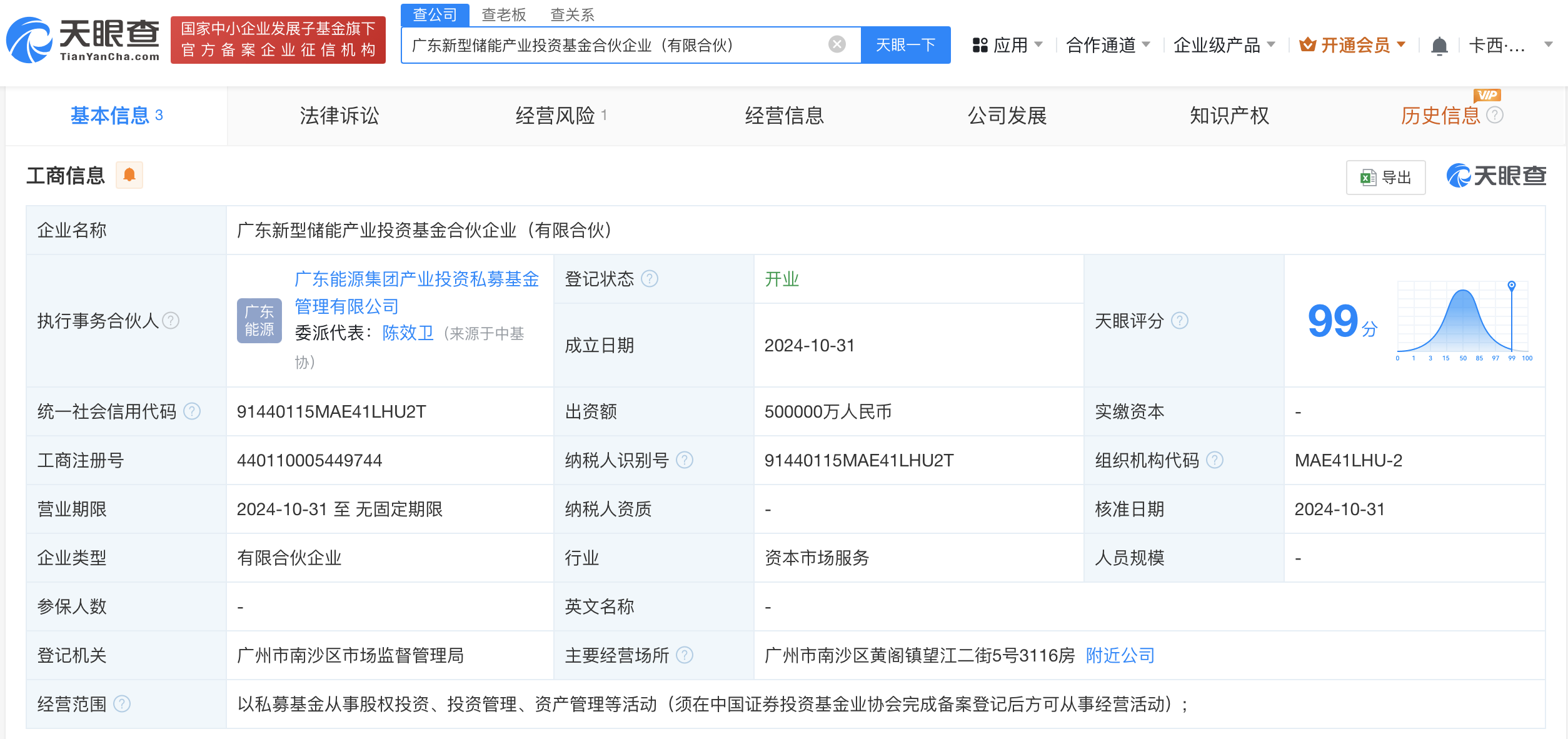 天眼查App显示,近日,广东新型储能产业投资基金合伙企业(有限合伙)成立,执行事务合伙人为广东能源集团产业投资私募基金管理有限公司,出资额50亿人民币,经营范围为以私募基金从事股权投资、投资管理、资产管理等活动。合伙人信息显示,该基金由广东省能源集团有限公司、广东能源集团产业投资私募基金管理有限公司共同出资。