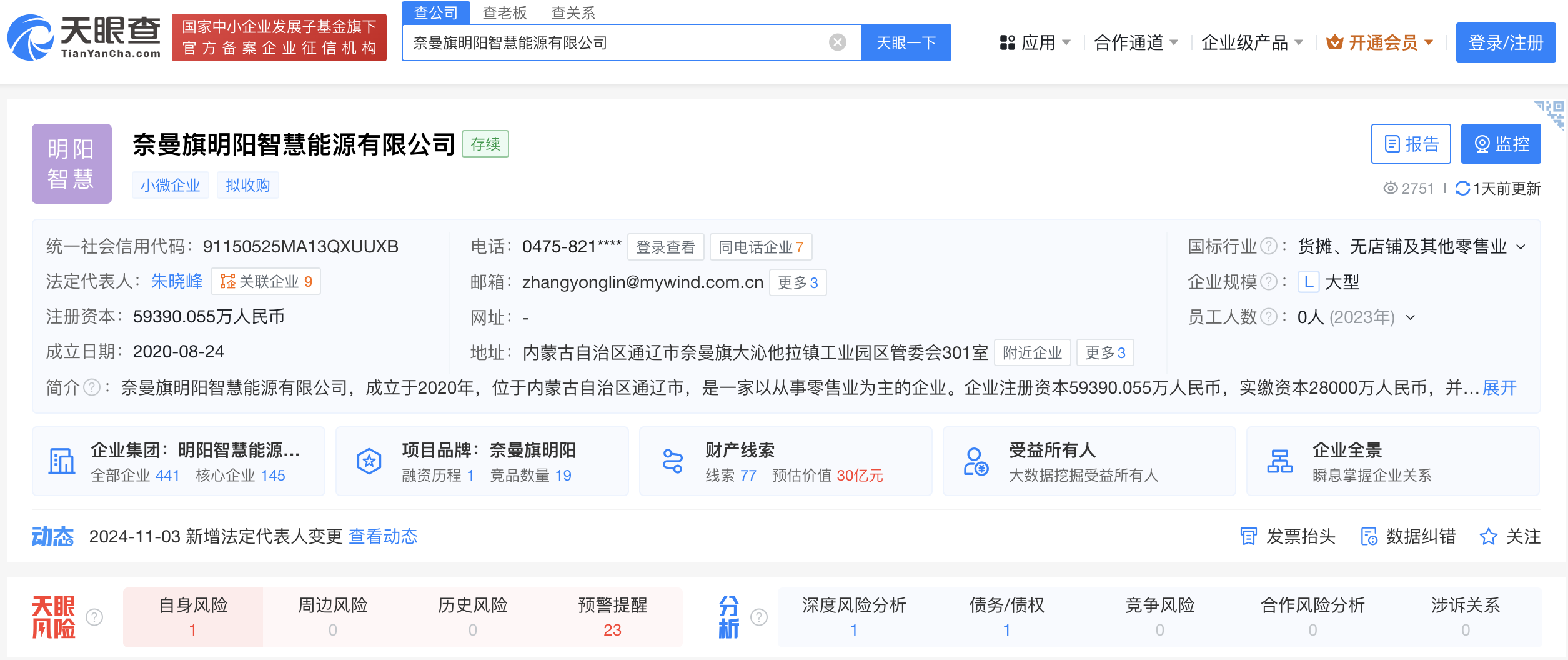 天眼查App显示,近日,奈曼旗明阳智慧能源有限公司发生工商变更,明阳智能(601615)旗下内蒙古明阳新能源开发有限责任公司退出股东行列,新增中广核风电有限公司为股东并全资持股,同时,多位主要人员均发生变更。