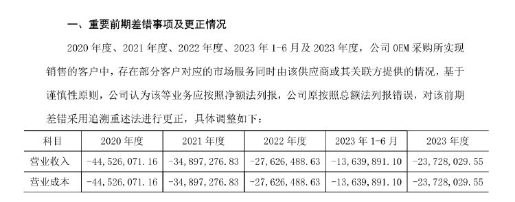 方正阀门称,2020年—2023年,公司OEM采购所实现销售的客户中,存在部分客户对应的市场服务同时由该供应商或其关联方提供的情况,基于谨慎性原则,公司认为该等业务应按照净额法列报,公司原按照总额法列报错误,对该前期差错采用追溯重述法进行更正。