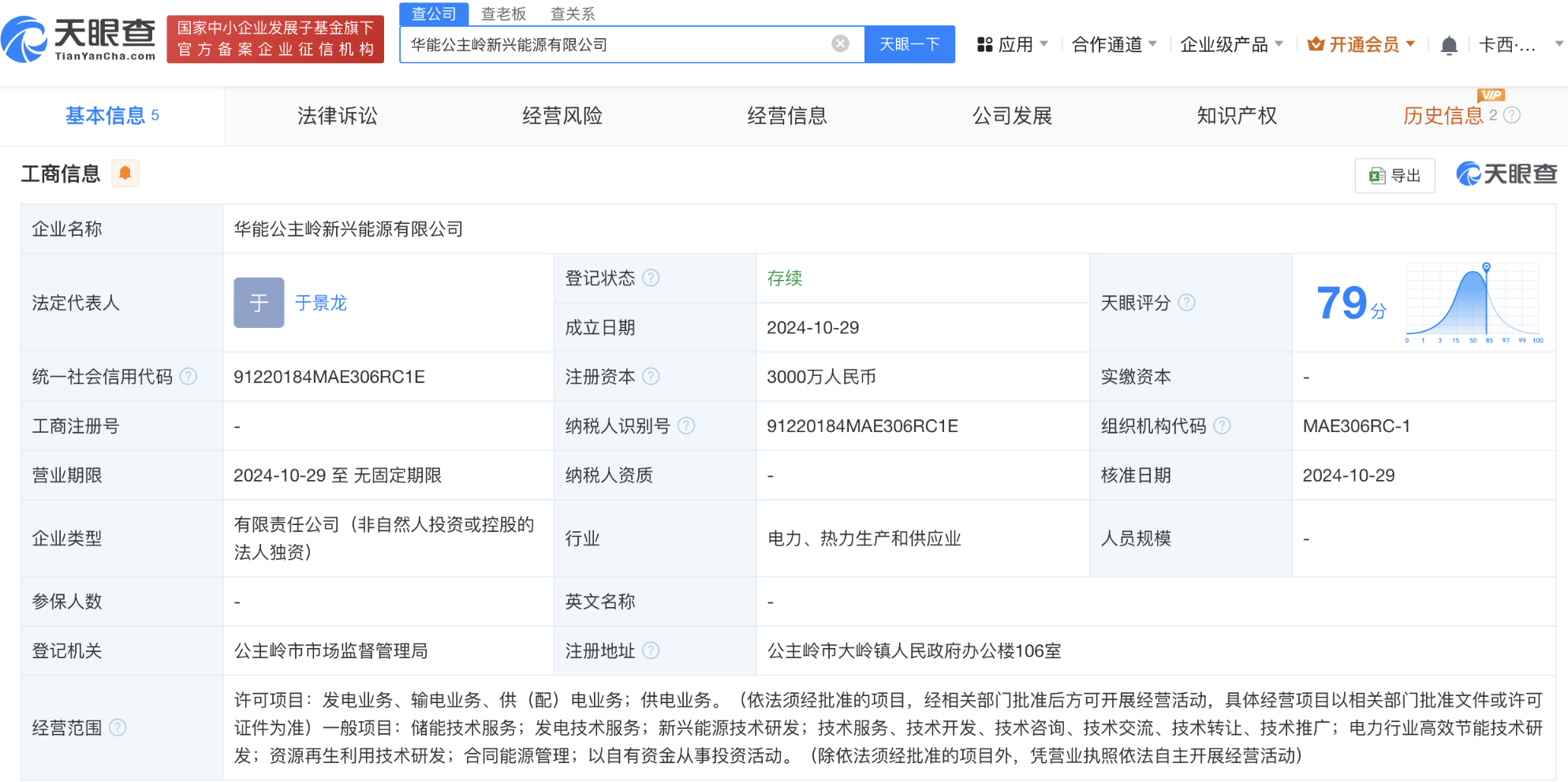 天眼查App显示,近日,华能公主岭新兴能源有限公司成立,法定代表人为于景龙,注册资本3000万人民币,经营范围含储能技术服务、发电技术服务、新兴能源技术研发等。股东信息显示,该公司由华能国际(600011)旗下华能吉林发电有限公司全资持股。