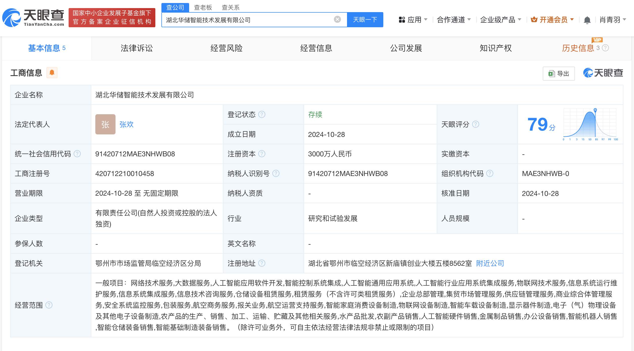 天眼查App显示,近日,湖北华储智能技术发展有限公司成立,法定代表人为张欢,注册资本3000万人民币,经营范围含人工智能应用软件开发、智能控制系统集成、人工智能通用应用系统、人工智能行业应用系统集成服务等。股东信息显示,该公司由深圳华付技术股份有限公司全资持股。