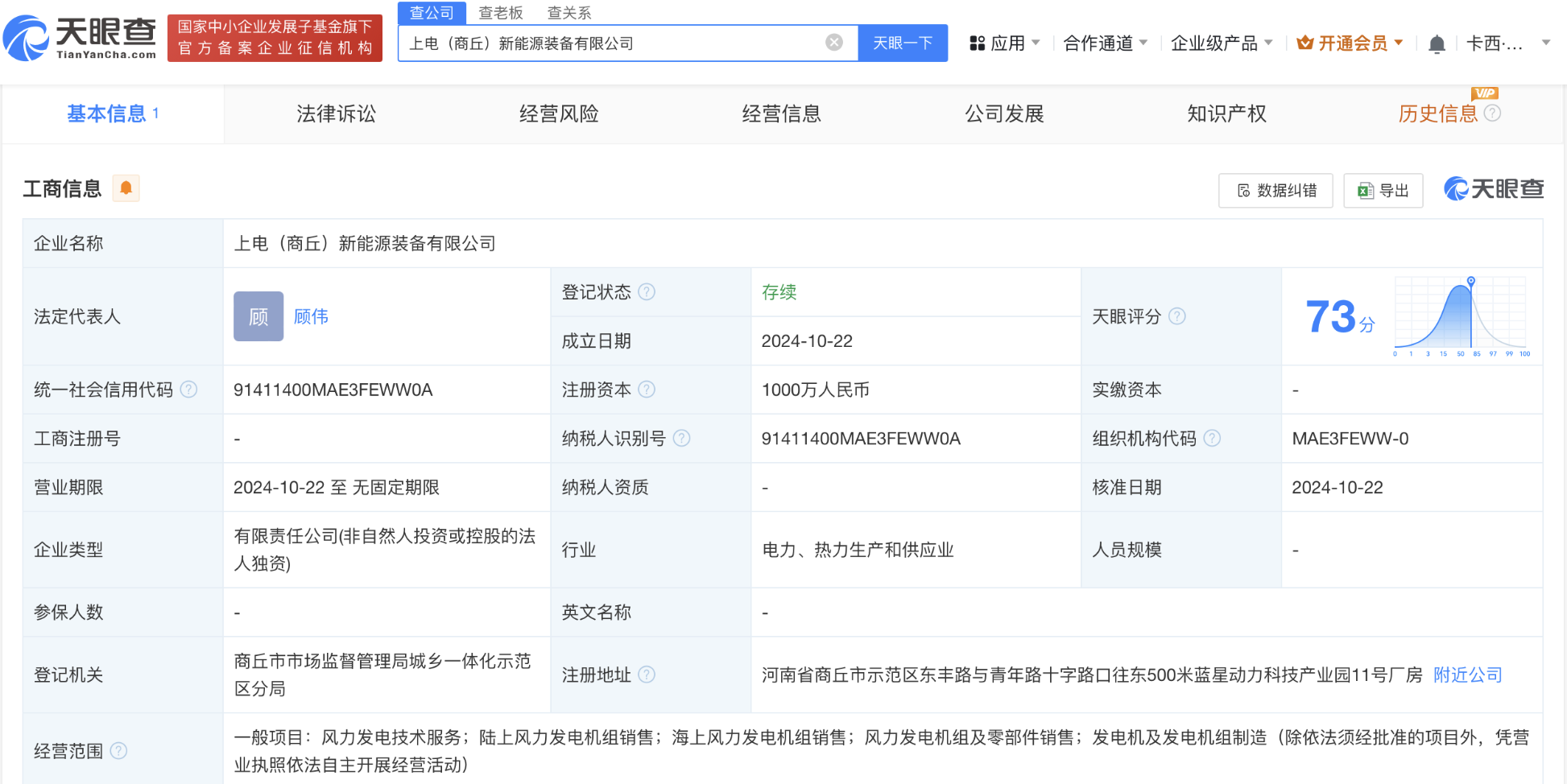天眼查App显示,近日,上电(商丘)新能源装备有限公司成立,法定代表人为顾伟,注册资本1000万人民币,经营范围含风力发电技术服务、陆上风力发电机组销售、海上风力发电机组销售等。股东信息显示,该公司由上海电气(601727)旗下电气风电(688660)全资持股。