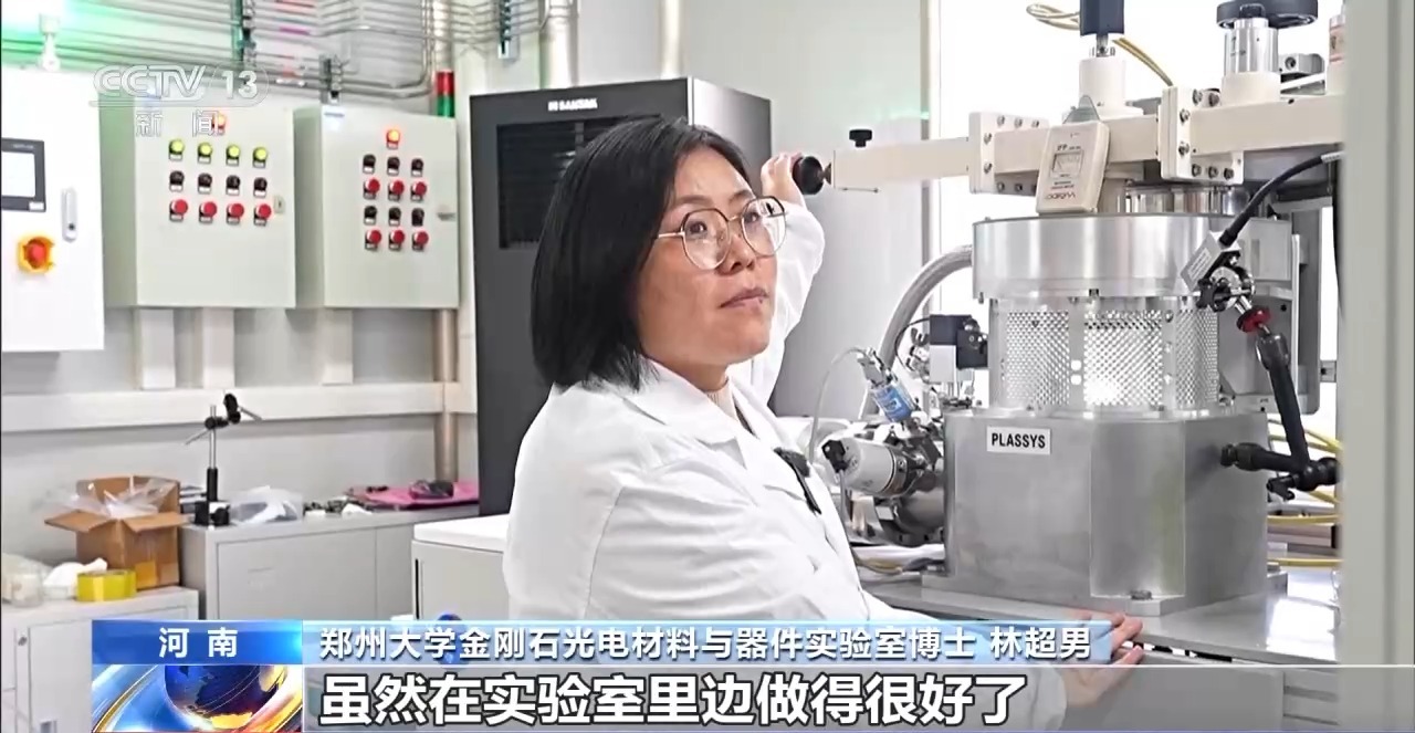 郑州大学金刚石光电材料与器件实验室博士 林超男:虽然在实验室里边做得很好了,但是1台设备跟100台设备来对比,确实差别还是很大的。有很多实验室没有遇到过的问题,一步一步去克服这些困难。