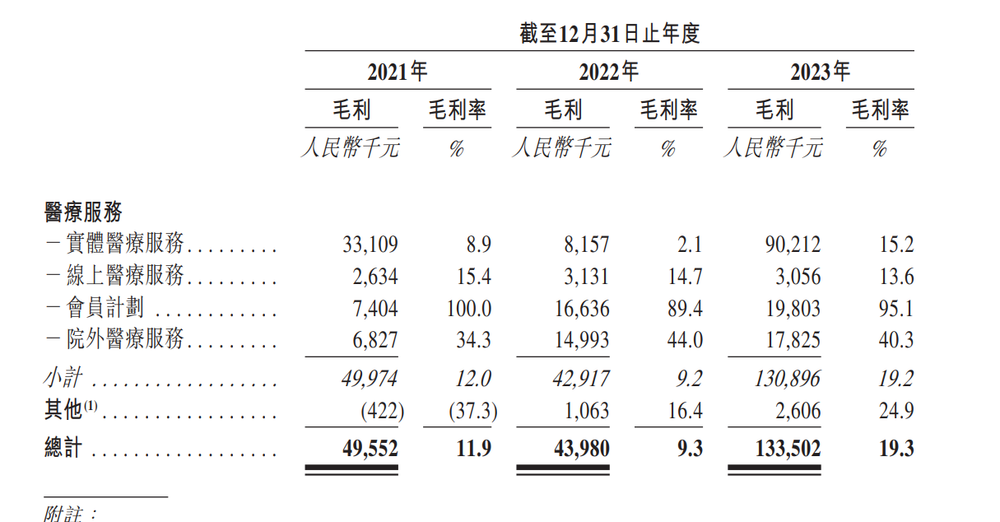 招股书显示,2021年至2023年,卓正医疗的毛利率分别为11.9%、9.3%和19.3%。分业务来看,作为卓正医疗最主要业务的实体医疗服务在报告期内的毛利率分别为8.9%、2.1%和15.2%,甚至低于同期公司的整体毛利率。