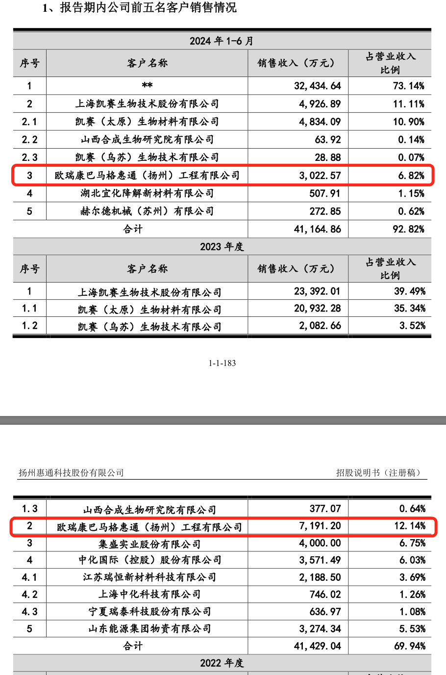 来源:注册稿从早期的申报稿数据看,2019年和2020年惠通科技对OBHE的销售收入占比分别为35.15%和46.01%。如今2024年上半年已降为6.82%,比例下降了不少。