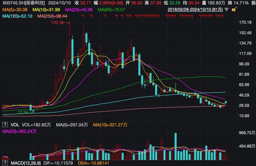 减持消息一经披露,迅速引发了闻泰科技股价的震荡。10月9日,闻泰科技收盘价报34.53元,较前一日下跌4.08%,10月10日,闻泰科技股价继续下跌4.72%。