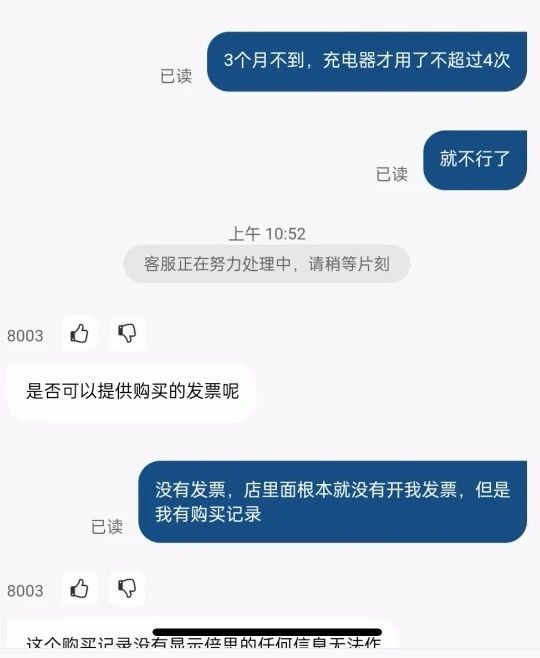 “客服人员态度很差,一直要求我提供发票。我向其提供了微信交易截图,客服也不认可,最终只能不了了之。”