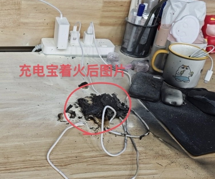 “2023年9月购入的倍思磁吸充电宝,2024年7月8日在公司充电时自燃,所幸没造成人员伤亡。”