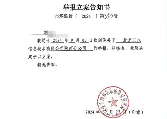 2024年9月11日,陕西省西安市中级人民法院出具执行裁定书及执行通知书,要求被告方北京五八信息技术有限公司陕西分公司、北京五八信息技术有限公司、瑞庭网络技术(上海)有限公司西安分公司、瑞庭网络技术(上海)有限公司支付相关费用,并发布公开致歉声明。