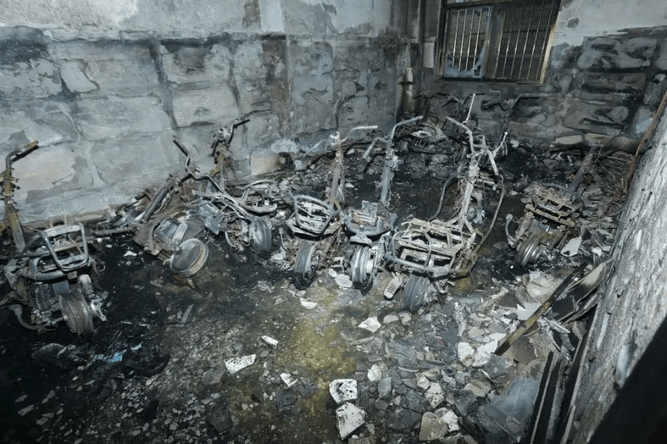 据调查,起火原因是某住户在网上购买了一个不符合安全标准的电动车锂电池,自己安装在其电动车上,并且使用不适配的充电器进行充电。而后在充电时锂电池热失控炸裂,起火引发火灾。