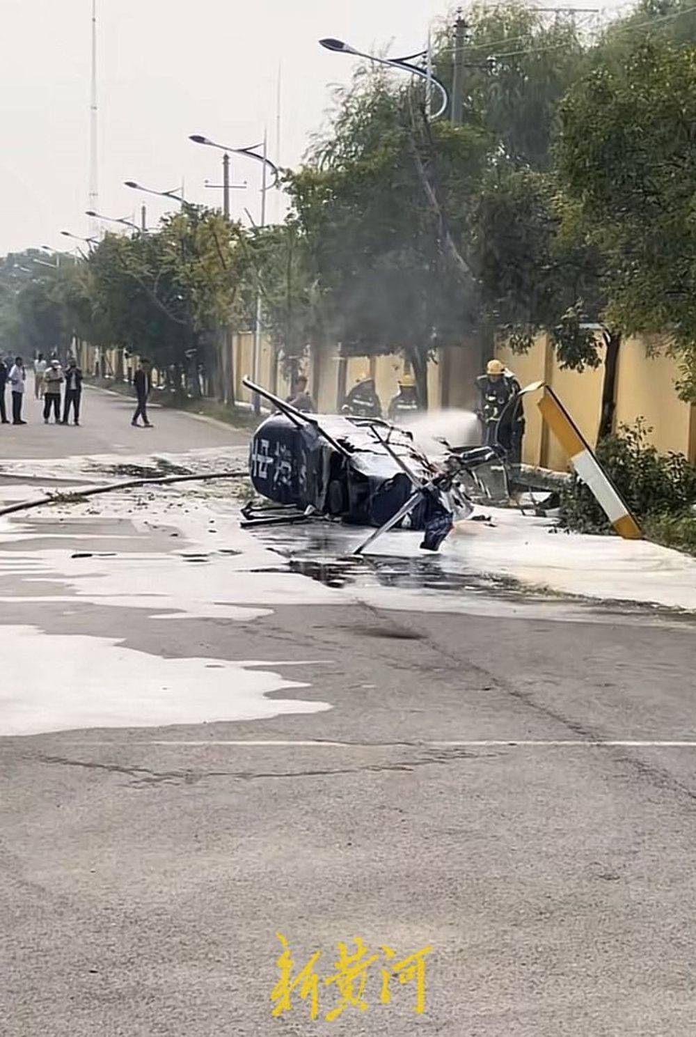 10月8日,有网友爆料称河南省许昌市一直升机发生坠落,地点是许昌魏都高新技术产业园内。根据视频显示,直升机坠落在道路中间,消防队员已将直升机燃起的火焰扑灭。