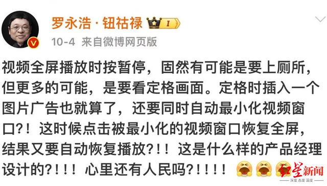 “按照法律规定来看,各大平台在视频暂停时弹出广告,从法理上说谈不上侵害了消费者权益,但这样的行为让消费者体验感下降,尤其是对充值会员的群体,会有一种被欺骗感。”河南泽槿律师事务所主任付建向红星新闻说。