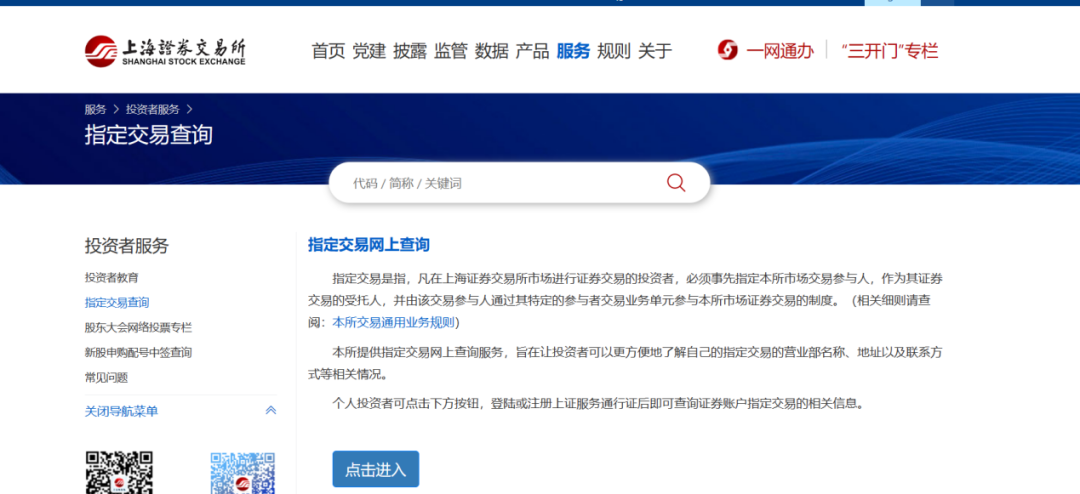 目前,上交所还提供指定交易网上查询服务,旨在让投资者更方便地了解自己的指定交易的营业部名称、地址以及联系方式等相关情况。