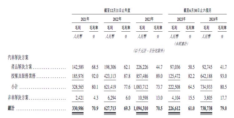 在利润方面,地平线2021年到2023年的毛利分别是3.31亿元、6.28亿元以及10.94亿元;2024年上半年的毛利达到了7.39亿元,同比增长226%。