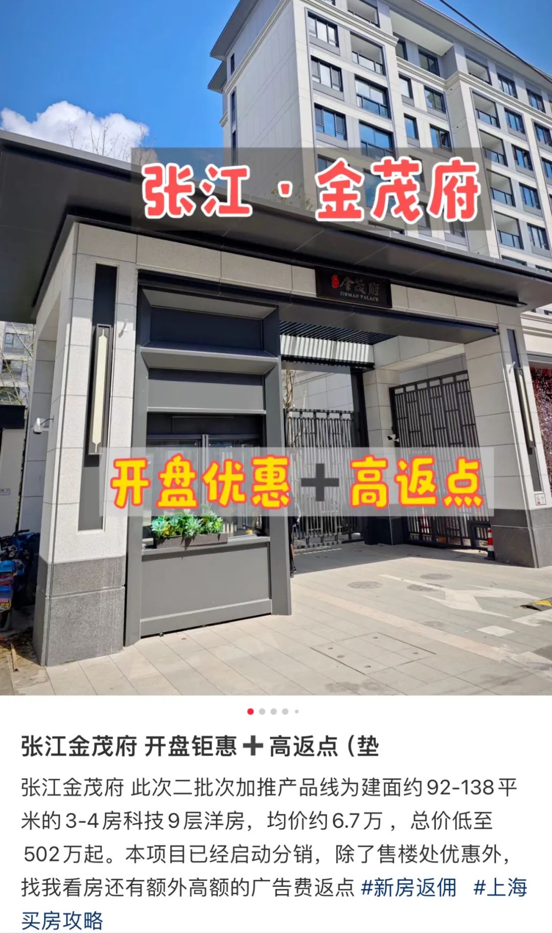 这样的销售情况难言乐观。或是考虑到这一点,二批次房源入市初始,张江金茂府便启动了分销,社交平台上,大量中介人员不断对外释放信息“找我看房首访返佣金3万至6万元”。