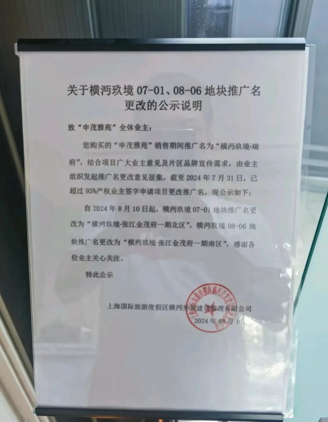 自2024年8月10日起,横沔玖境07-01地块推广名更改为“横沔玖境·张江金茂府一期北区”,横沔玖境08-06地块更名为“横沔玖境·张江金茂府一期南区”。