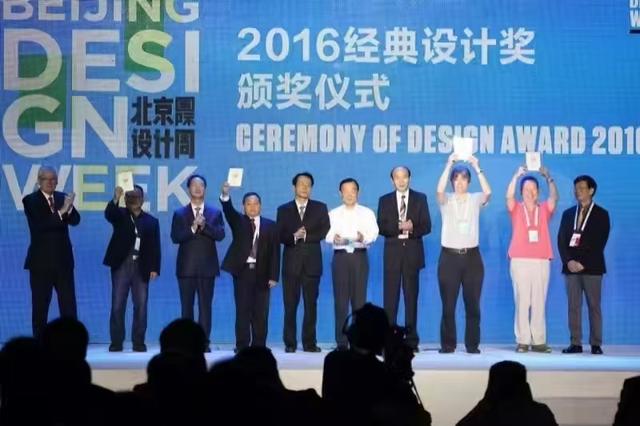 郭春伏代表父亲领取北京国际设计周的经典设计奖(图右二为郭春伏)