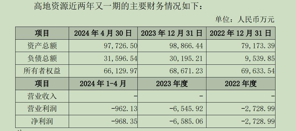 另一边,高地资源也至今尚未产生任何收入,2022年、2023年和2024年1至4月,净利润分别为-2728.99万元、-6585.06万元、-968.35万元。