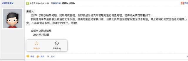 针对“氢马儿”在成都投放,封面新闻进行了系列报道(《“氢马儿”在成都投放 便捷之下的安全问题引市民担忧》、《“氢马儿”在成都投放引争议 成都市交通运输局:不具备营运条件》)。此前,成都市交通运输局在网上回复称,“氢马儿”安全性无相关认定,不具备营运条件。