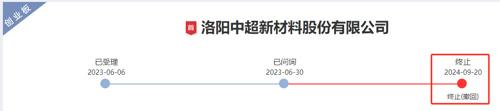 9月20日晚,深交所官网更新,因洛阳中超新材料股份有限公司(以下简称中超股份)、保荐人海通证券撤回发行上市申请,根据相关规定,深交所决定终止其发行上市审核。