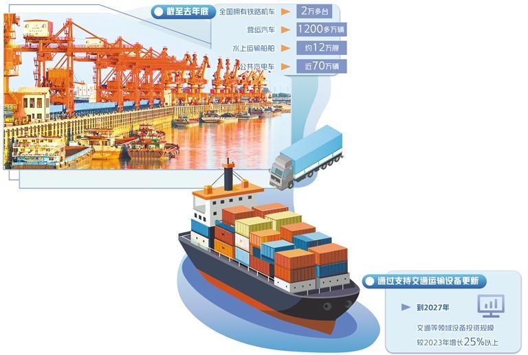 根据国务院印发的《推动大规模设备更新和消费品以旧换新行动方案》,通过支持交通运输设备更新,到2027年,交通等领域设备投资规模较2023年增长25%以上。