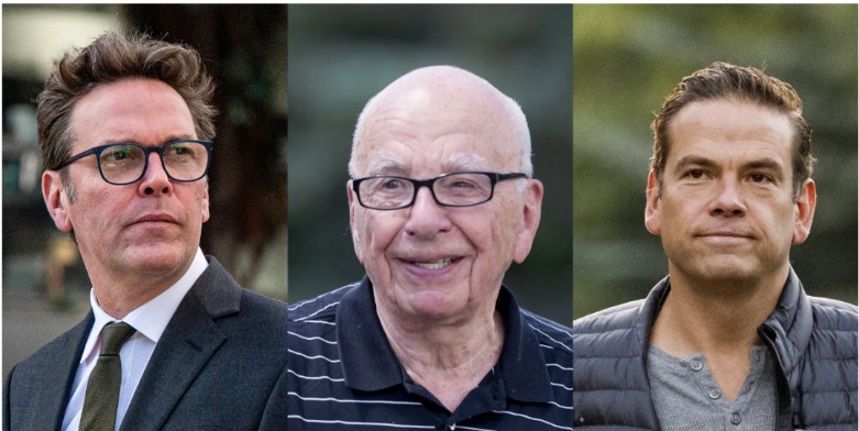 (从左至右次子詹姆斯默多克长子扎克兰 来源:Bloomberg)