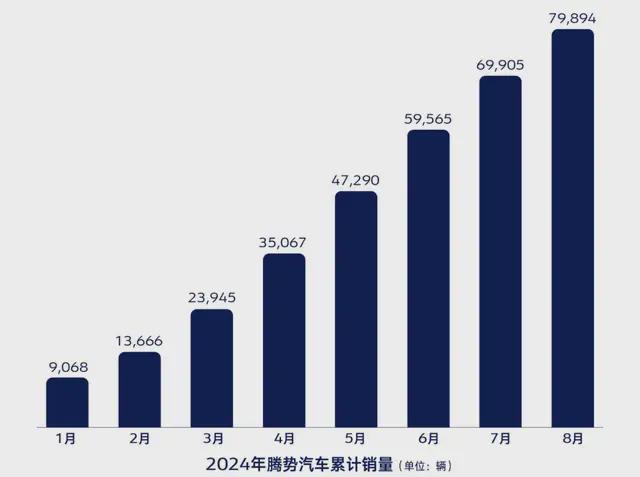 腾势2024年的销量目标是20万辆,1至8月,共售出79894辆,完成目标的40%。