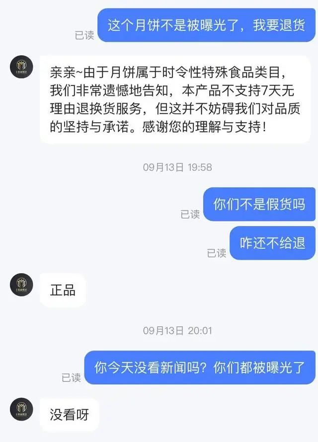 南财快讯记者同样以消费者身份咨询美心月饼,美心月饼客服人员称一般不支持退货,若消费者确有退货需要,可先提供二维码未拆及产品未拆的照片,再进行退货。