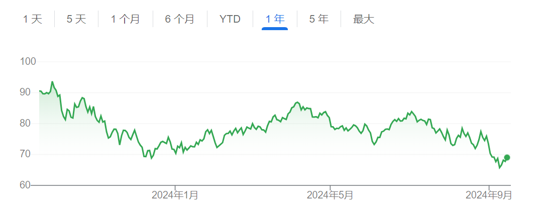 而如今,随着全球石油需求回落,国际油价已经明显降温。截至发稿,WTI原油价格已经跌至70美元/桶以下,过去一年累计下跌23.1%。