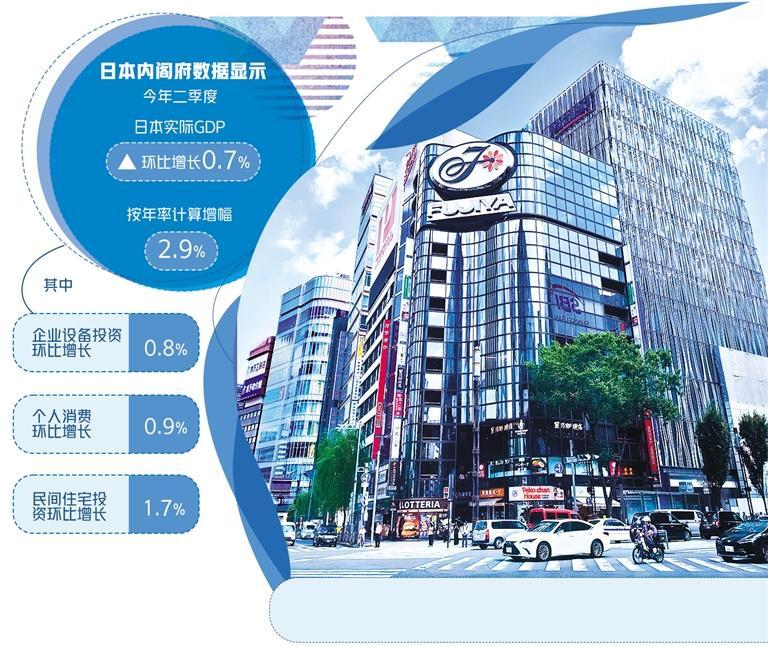 日本内阁府近期公布今年二季度国内生产总值(GDP)修正值显示,剔除物价变动因素的实际GDP环比增长0.7%,按年率计算增幅为2.9%,较8月15日公布的初步统计结果出现小幅下调。此前公布的初步统计结果显示,今年二季度,日本实际GDP环比增长0.8%,按年率计算增幅为3.1%。