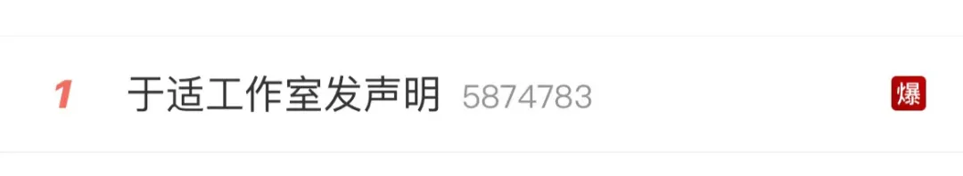 9月15日,于适工作室针对近期网络平台上的不实言论和针对其个人的侮辱性词汇等发布严正声明。声明指出,工作室已委托律师事务所介入处理。