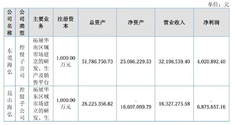 公告显示,海昌智能下设东莞海弘、昆山海弘、河南海弘三家子公司。其中,昆山海弘业绩持续亏损,净资产为负。