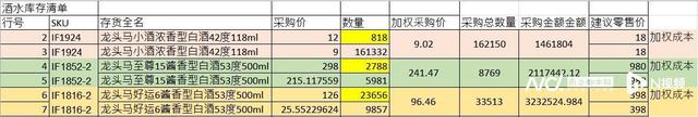相关酒品抬高后的采购价