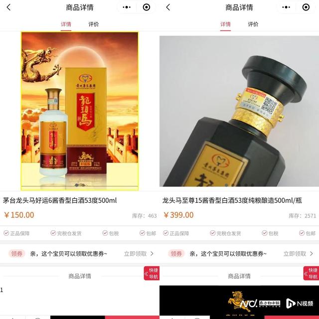 根据朱学军提供的“劣质酒”照片,湾财社记者在京东、淘宝等线上电商平台查询发现,该款酒鲜有售卖。在通拓科技旗下通淘优选小程序上,龙头马好运6售价为150元/瓶,龙头马至尊15的售价为399元/瓶。目前,小程序上已无法搜索到上述两款酒。