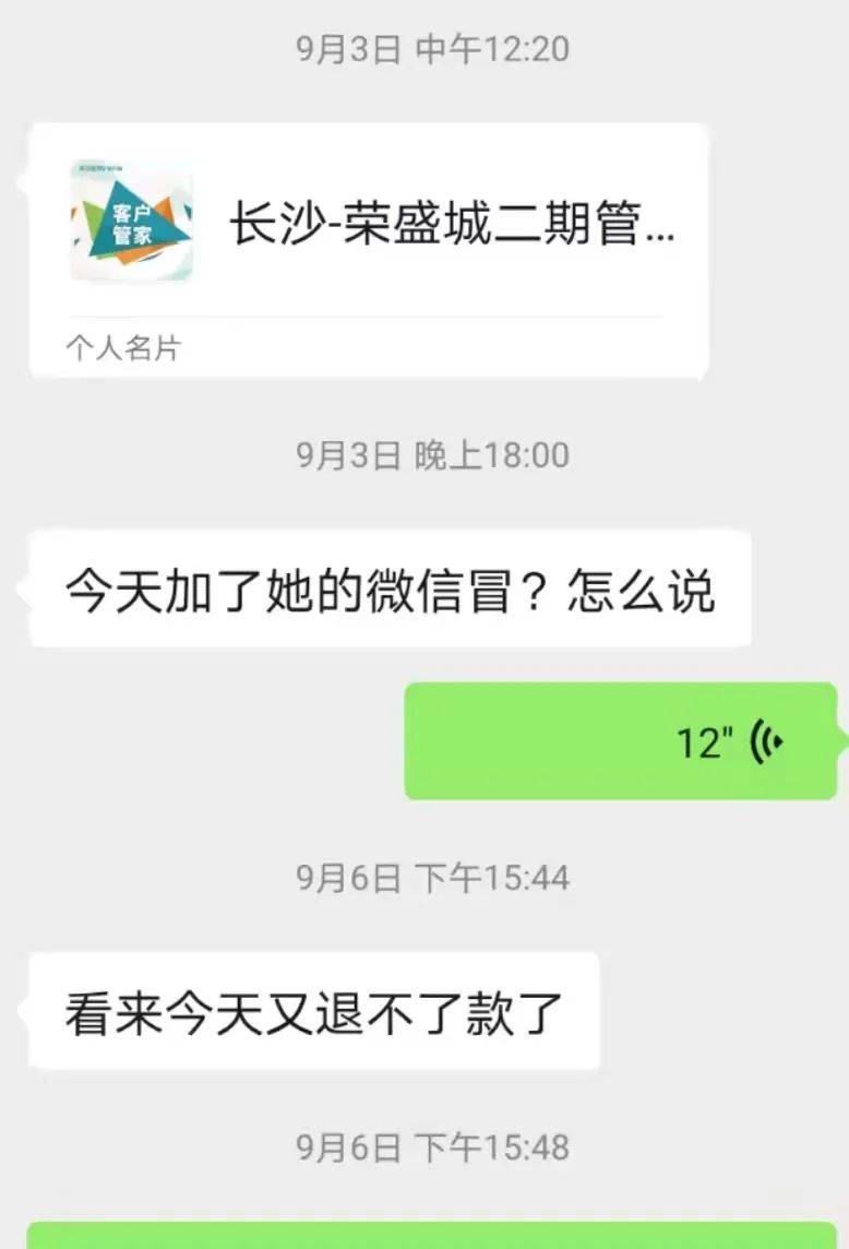 “看来今天又退不了款了”9月6日下午,王先生告诉潇湘晨报记者,对方没能兑现承诺。记者随后再次致电物业工作人员,其表示相关退款手续已经办好,会在下周二(9月10日)退款,会立即和王先生沟通协调。