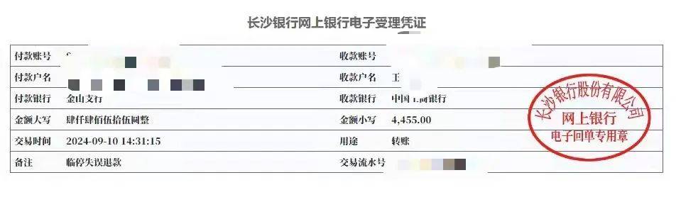 9月10日下午,王先生向潇湘晨报记者发来对方备注“临停失误退款”4455元的截图,“终于退款了,感谢媒体记者和有关部门的帮助。”随后记者联系到该小区物业王经理,他表示,今天已向王先生退款。至于为何这么久,是因为办理退款需要走流程,会耗费一些时间,另外公司在每个月设立了固定的付款日,也会影响退款时间。
