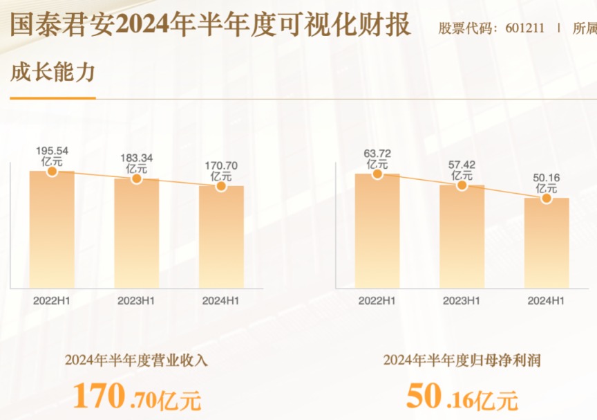 半年报显示,国泰君安证券2024年上半年实现营业收入170.70亿元,归属于上市公司所有者的净利润50.16亿元。朱健还提到,2024年上半年,公司国际业务着力夯实核心业务能力,加强跨境一体化管理,务实推进战略布局,不断提升海外子公司的市场影响力,收入显著增长。