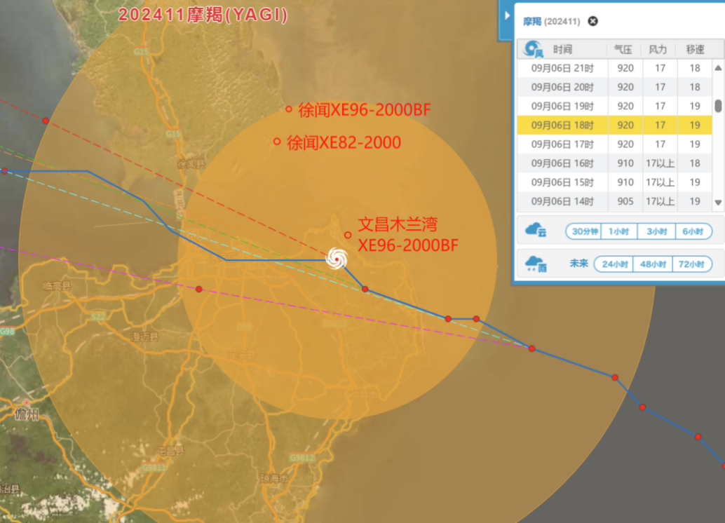 2024年9月6日16时20分,超强台风“摩羯”在海南岛文昌市翁田镇沿海登陆,登陆时中心附近最大风力达17级以上(62米/秒),随后又以超强台风级(58米/秒)袭击了中国广东省徐闻县角尾乡沿海地区。面对来势汹汹的“摩羯”,湖南兴蓝风电有限公司(以下简称兴蓝风电)机组所在的海南文昌、广东徐闻等多个风电场正面迎击“风眼”,特别是海南文昌项目距离风眼正中心仅约8km,兴蓝风电机组如钢铁战士“历尽劫波身未改,依然挺拔向朝阳”。