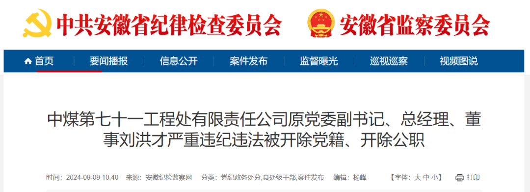 日前,经安徽省纪委监委指定管辖,宿州市灵璧县纪委监委对中煤第七十一工程处有限责任公司原党委副书记、总经理、董事刘洪才严重违纪违法问题进行了立案审查调查。