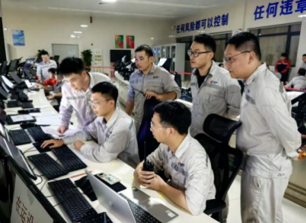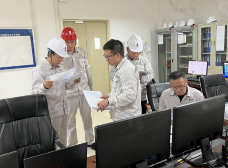 科学部署,严格管控,确保生产安全有序。台风登陆前,党员突击队日以继夜、争分夺秒组织职工群众和参建单位、运维厂家专项检查重点部位和区域,加固海上、陆上设备,清理场站周边环境,落实防汛措施,做好应急通讯和车辆准备。同时,组织生产人员开展事故预想、应急演练,进行设备试验,强化运行监视。至9月6日10点,已投运的189台风机全部转入台风模式,采取台风偏航正对风策略,紧跟台风风向变化,严格保证机组安全运行,70台光伏逆变器全部停运,最大程度降低台风带来的损害。台风过境期间,徐闻风电生产现场和广州生产运营中心通过“现场+远程”双监视的方式,协同开展设备监视和应急处置。9月6日晚间,徐闻县域进入12级风圈,徐闻风电多个场站受电网线路跳闸影响出现停电,经准确的分析研判和积极的多方沟通协调,仅用3个小时即恢复场站送电工作。