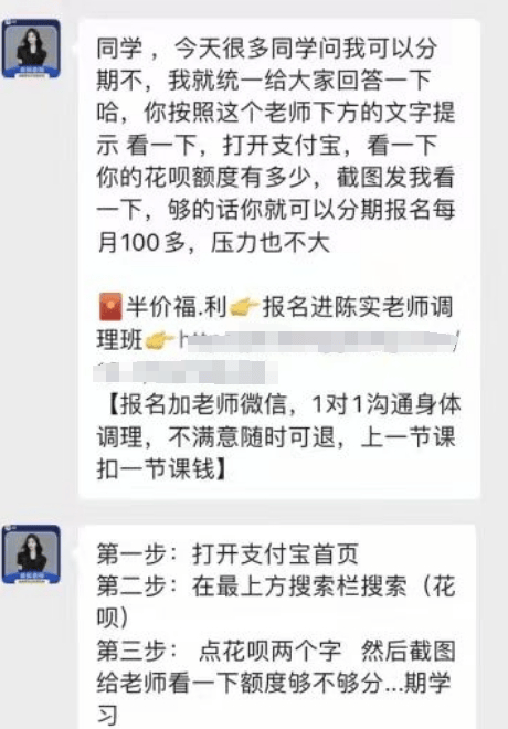 对于一些表示支付有困难的学员,工作人员还推荐使用花呗分期、信用卡支付。