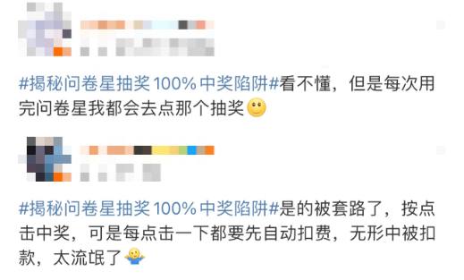 9月1日,记者致电问卷星,客服告诉记者,“抽奖是问卷星和商家合作的,将商品以中奖的形式推送,中奖率是100%。”