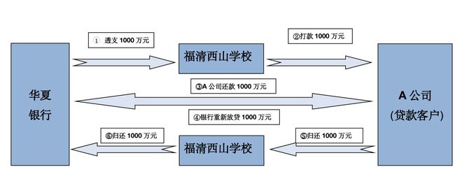 打个比方,A公司向华夏银行贷款1000万元,其贷款即将到期但无力偿还,银行就通过福清西山学校透支出1000万元交给A公司,A公司还贷,再重新向该银行贷款1000万元。A公司把从银行新借出的1000万元归还给福清西山学校,再由学校向银行归还欠款。