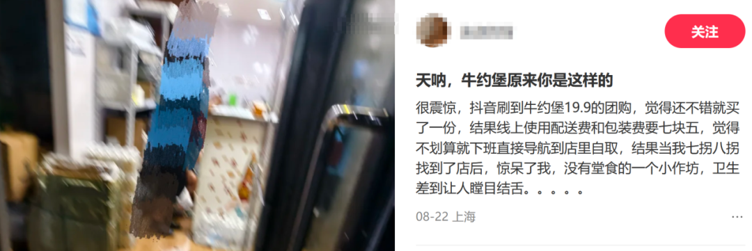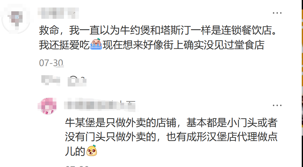 据南方都市报报道,有网友发帖称,“对牛约堡祛魅的最好方式就是自提。”该网友称,其发现牛约堡的门店藏在小巷子里,很脏。类似的帖子在社交平台上引起了关注讨论。