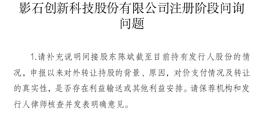 据悉,就在影石创新提交注册之后,证监会曾再下发问询,要求“补充说明间接股东陈斌截至目前持有发行人股份的情况,申报以来对外转让持股的背景、原因,对价支付情况及转让的真实性,是否存在利益输送或其他利益安排”。对此,坊间就传陈斌乃系统内离职人员。