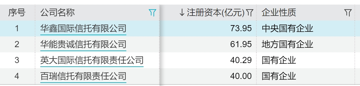 四大电力系信托公司注册资本排名图源;Wind
