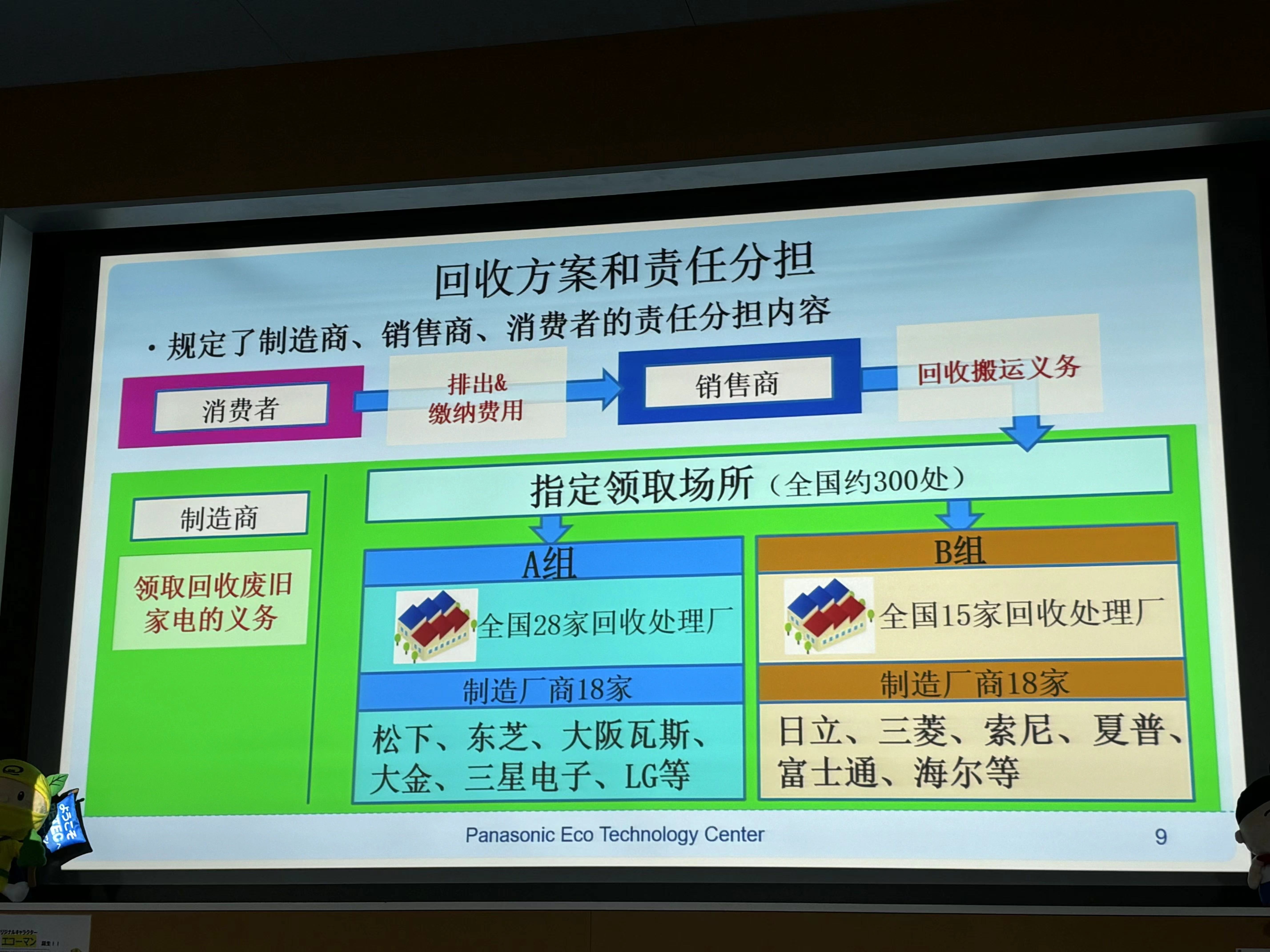 而在日本,目前按当地法律规定,废旧家电回收处理的费用由消费者支付其中的一部分。