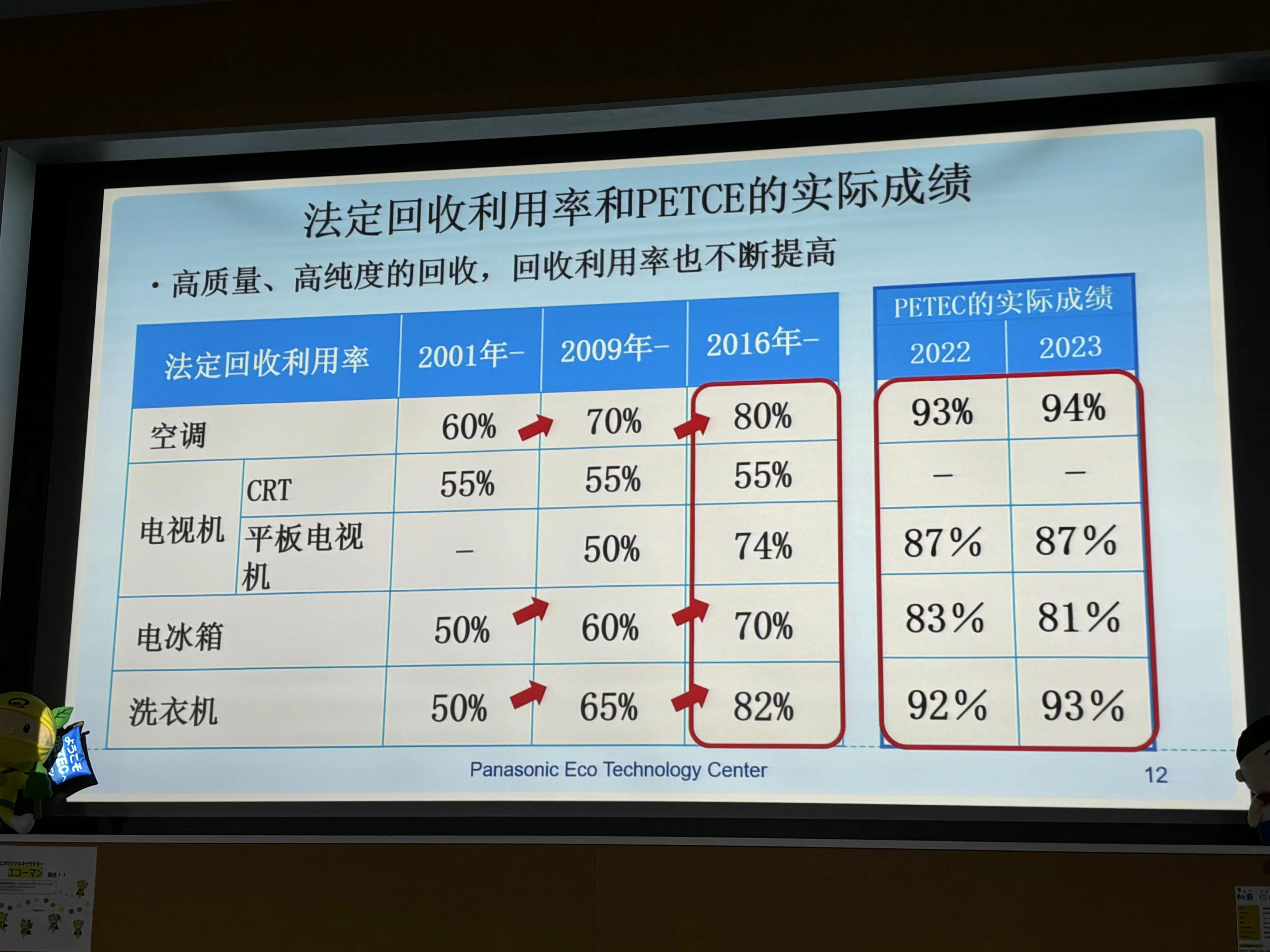 回收利用率也不断提高。日本法定的回收利用率(生成再生资源重量占废旧家电重量的比例),2016年至今,空调、平板电视、冰箱、洗衣机分别为80%、74%、70%和82%;而松下2023年这几类家电的回收利用率已分别达到94%、87%、81%和93%。
